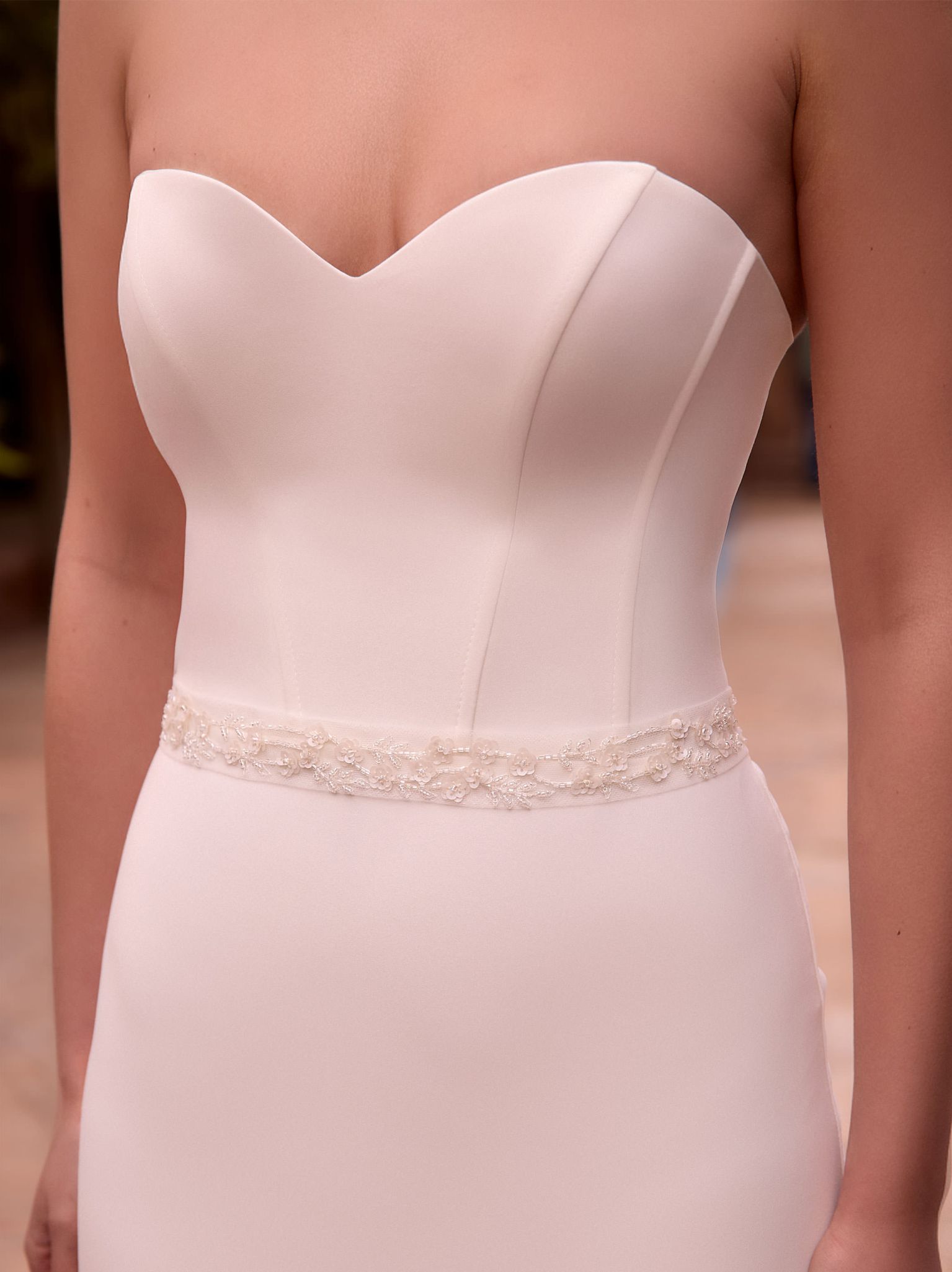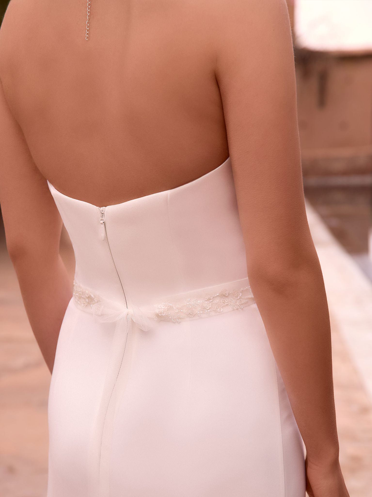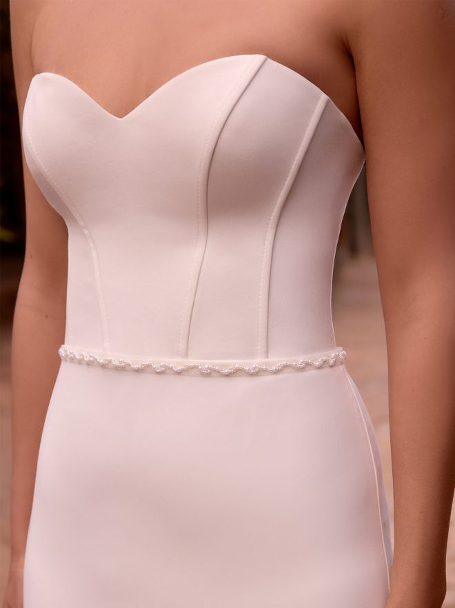 Modern, klar, selbstbewusst: Dieser Tüllgürtel mit floraler und blättriger Zierspitze sowie Pailletten setzt feine Akzente an der Taille. Mit 275 cm Länge und 3 cm Breite lässt er sich hinten binden und passt variabel. Sorgfältige Details und aufwendige Zierspitze unterstreichen die handwerkliche Qualität. Ideal als Taillengürtel für Brautkleider, für den zweiten Look am Abend oder als stilvolles Accessoire bei Standesamt-Looks.